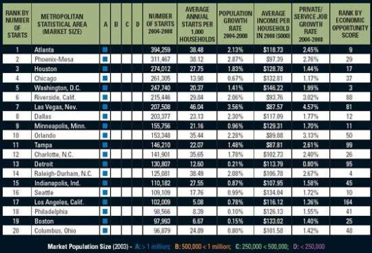 Predicting which markets will prove most fertile for new-home builders over the next five years may involve as much crystal ball guesswork as economic modeling. nevertheless, the science of forecasting which markets stand the best chance for new-home growth has been steadily improving. one reason for this is the growing granularity of housing data, employment and migration figures, and other local market economic indicators. Another reason is the steadier trajectories of local market business cycles. as a result, longer-term forecasts are becoming more plausible, if not entirely reliable. here are our predictions for the 100 largest new-home construction markets over the next five years through 2008.