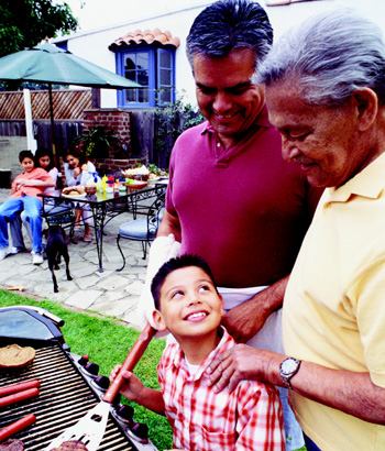 One possible accommodation is to design space so that the flow of people from an inside social space is directed to an outdoor gathering or cooking space. Tens of millions of Latino families live in temperate climates —in Texas, Florida, Arizona, and California —so that even in the winter months, it is common to enjoy days in which a good deal of the social activity occurs outdoors. Latino family gatherings are frequently characterized by groupings of people in different spaces. The older men may sit outside near a barbecue pit while the señoras gather in the kitchen and the younger children play outside in the yard. Young men may be gathered around a television set watching a sporting event and the young misses talking in an adjacent bedroom. Builders planning for these frequent uses should consider not just interior layouts but also exterior spaces, including a barbecue pit, patio space, and play space for children. Because of the intensity of the sun in many of these areas, it may also be useful to provide outdoor covered spaces, perhaps with a ceiling fan, to create the feeling of an “outdoor room.”