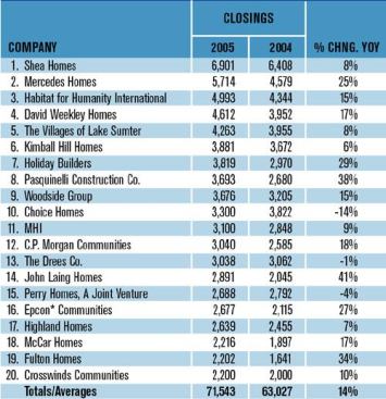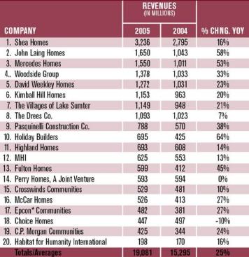 METEORIC GROWTH The fact is flexibility, patience, and agility are the terms you most often hear to describe the big differences between leading private companies, who netted out an aggregate 25 percent revenue growth in 2005 over 2004, and did it by selling 14 percent more houses than they did the year earlier, which compares admirably with the 25 percent revenue boost publics got on home unit sales growth of 11 percent.