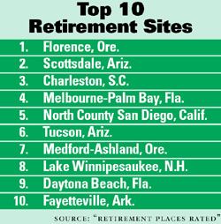 THE SIXTH EDITION OF “RETIREMENT Places Rated” ranks Florence, Ore., as the best U.S. destination for Golden Agers. The statistical study ranks 203 locations according to six major factors: cost of living, climate, crime, economy, ambience, and services.