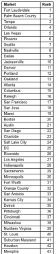 Though Florida markets continued to dominate the rankings for a second season, there was some movement within the top five. Fort Lauderdale overtook Palm Beach County as the hottest market, dropping Palm Beach down a notch, while Tampa remains unchanged in third place. Orlando fell from second place to fourth place while Las Vegas climbed to fifth, edging Seattle out of the top five for the first time in more than a year.