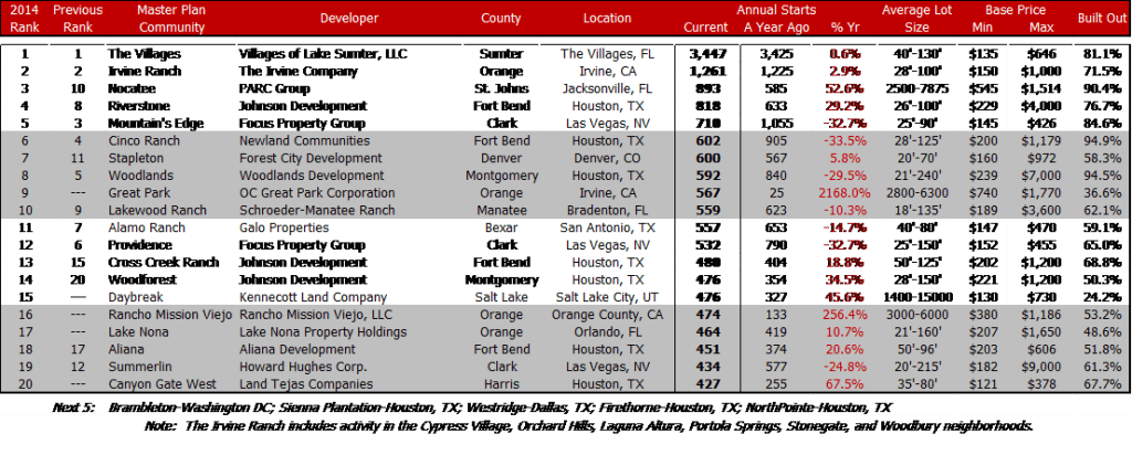 Top 20 Master Planned Communities at 2014’s Halfway Mark