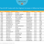 ZIP codes with the largest share of millennials differed from those experiencing the highest Gen Y increases. In Chicago’s West Loop, 60661, 73% of residents are millennial members. The study reports that this ZIP code “is as close as it gets to business without actually being in the Loop, and has only recently been turning into a more residential area.”