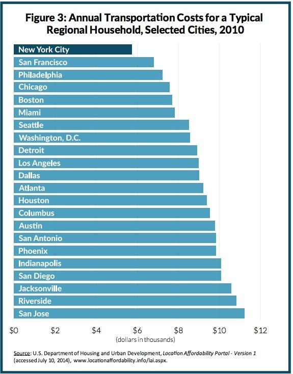 The rent can be a little damn high, so long as the ride isn’t. CityLab’s Eric Jaffe takes a look at the role of transit in reducing costs to get to work-which come into clear focus in a series of new reports on city affordability from the Citizens Budget Commission.