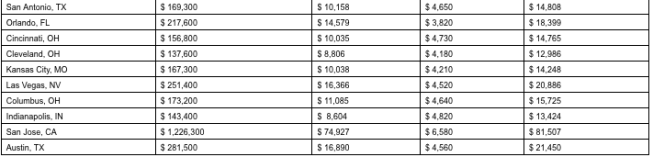 Home sellers are also responsible for agent commissions and transfer or sales taxes, which are two of the largest closing costs. Nationally, sellers spend $13,357 on average for both costs. However, since they are percentages of a home’s sale price, sellers in pricey markets like San Jose pay much more – $74,927 on average for the median priced home, the highest of the metros analyzed. Sellers in Indianapolis pay the least ($8,604), as home values are lower and the state has no transfer tax.