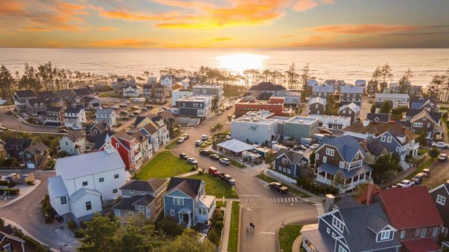 An aerial view of Seabrook on Washington's coast.