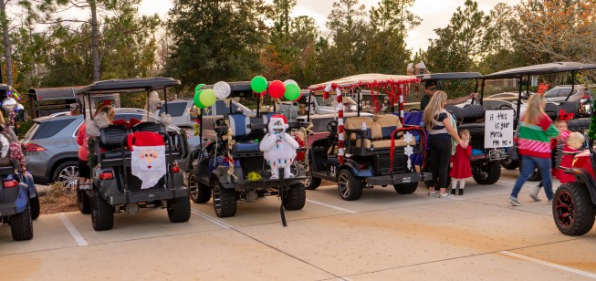 Golf carts are part of many community events including Winterfest at amenity-rich Shearwater in St. Augustine, Florida.