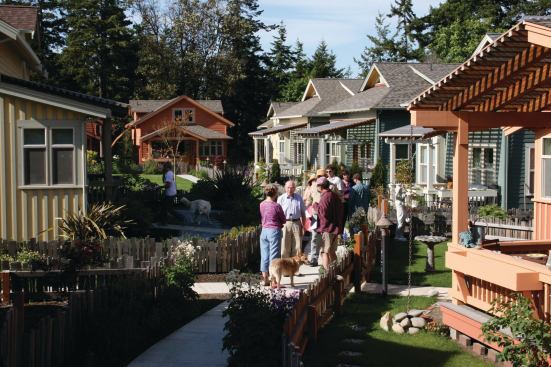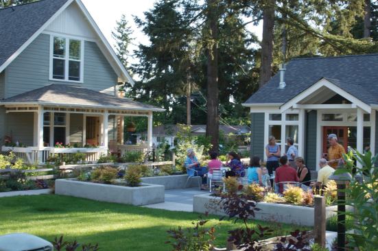 Pocket neighborhoods provide a context for people to live more simply together. Houses can be smaller, in part, because there are shared spaces. This might be a tool shed and gazebo, or it might be a larger common building with an overnight guest facility. Everybody doesn’t have to own a lawnmower, shovel, rake, and weed whacker. Some neighborhoods even share a flex car. This saves money, but it’s more about simplifying. When you have less to take care of, you have more time to spend on things you love.