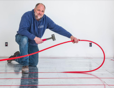 Radiant floor heating panel system of grooved aluminum laminated FSC certified plywood panels which are applied to the sub-floor or concrete. PEX tubing is inserted in the groves and warm water is circulated, providing fast comfortable radiant heat to the room.