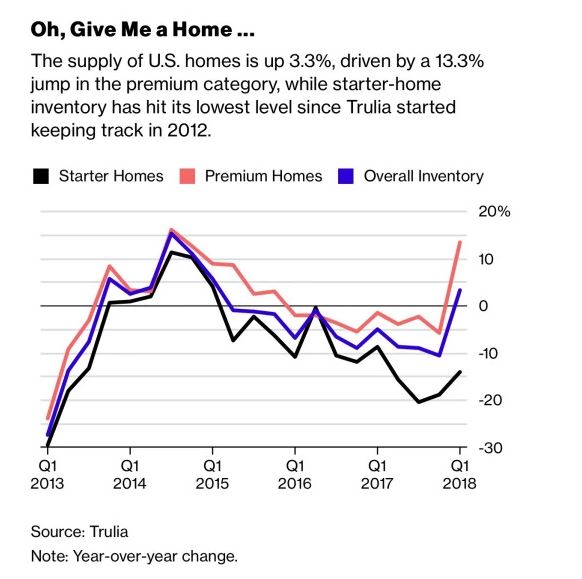 Bloomberg’s Noah Buhayar highlighted the impact of this ever-declining entry level inventory citing a recent Trulia study (emphasis mine):