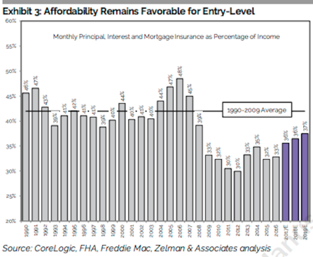 This, the analysts at Zelman & Associates who produce The Z Report say, creates a “substantial buffer” for house price and interest rate drift upward from their prevailing levels today. The report notes:
