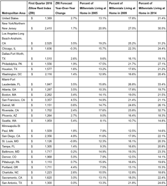 Omaha, which made Zillow’s recent list of hot housing markets to watch in 2016, has the smallest percentage of millennials living with Mom, — 11%. Other markets with a small percentage of millennials living with Mom include Seattle, Denver, and Portland.