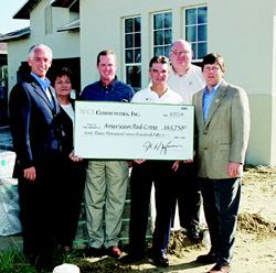 WORTHY CAUSE: In Fort Myers, Fla., (left to right) WCI’s Michael Greenberg, Diane Kerper, Rob Gislason, Charlie Maffett, and Ron Glace display a company donation to the Red Cross. To brace themselves and their communities, builders moved into action, executing a series of pre- and post-storm plans that had been reviewed, revised, and rehearsed. They battened down every aspect of construction, management, and building operations. People had to be protected: employees, buyers, visitors, and trade partners. Construction sites, completed homes, and large communities had to be thoroughly inspected and cleared of any loose objects; a hammer or a roof tile could become a deadly missile if winds blow more than 100 miles an hour.