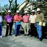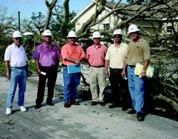 DAMAGE PATROL: TOUSA associates (left to right) Terry White, Jeff Cowart, Mark Hillard, Ken Coomer, Gregg Gordon, and Ned Rentz stand in a community that sustained damage in Orlando, Fla. The Aftermath Amazingly, big builders reported that their houses, construction sites, and staff came through with flying colors; their detailed preparation strategies survived the one-two-three punch.