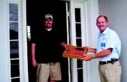 DOOR-TO-DOOR: Tim Schuler, Pulte’s customer relations manager, checks on homeowner Grant Huffine in Orlando’s Oak Hammock Preserve. Holiday Builders is certainly not alone. Material shortages were already impacting production schedules. Contractors in a number of Florida markets also reported turning down selected home building projects before the storms due to the inability to find additional workers. Long-standing contracts should allow high-volume builders to move forward quickly. However, the shear volume of disruptions—from power outages to delays in getting needed supplies of gasoline, let alone building materials—had builders scrambling to reassess their backlogs and their next quarters’ financial projections. WCI, for instance, braced investors for the possibility the company’s third quarter results could come in “toward the lower end” of earlier earnings guidance, which had been at $0.60 to $0.70 a share, as a result of storm-related delays.