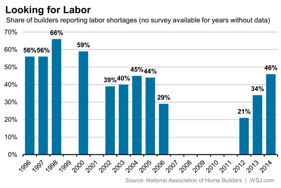 Wall Street Journal staffer Nick Timiraos explores the reasons so many home building industry observers say there are labor shortages, when there are also many construction laborers who are looking for work (paywall).