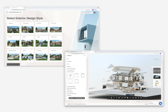 Homebuyers are looking to get as much for their dollar as they can. Large national builders typically attack this by using their size to keep prices low. This is an effective strategy, but it’s not the only one. Smaller builders can counter this by using a design tool, like customhome.ai, to offer customizable plans with a variety of design options. You can help your clients choose an architectural style, select a floorplan that suits their lifestyle, and customize both interior and exterior features in real-time, with realistic renderings that delight buyers and can dramatically boost your margins by helping you avoid a race to the bottom.