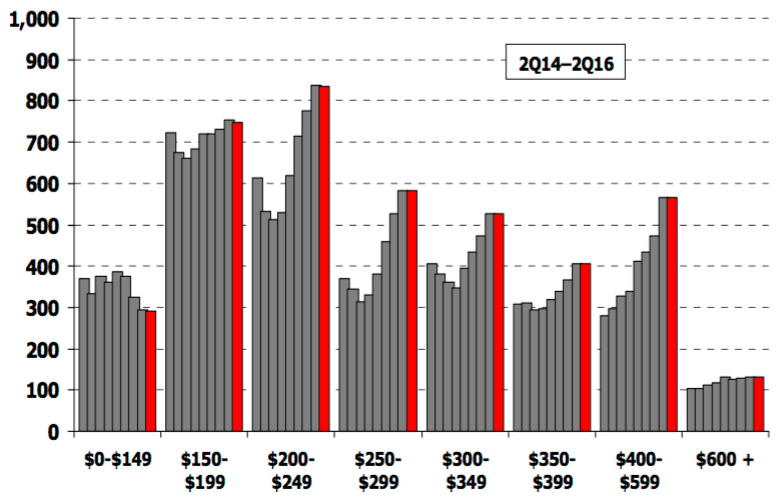 According to Metrostudy’s 2Q16 lot-by-lot survey of subdivisions in the Boise/Treasure Valley housing market, there were a total of 1,352 new home starts (attached and detached) during 2Q16, up 10% YoY and 28% higher than 1Q16. New home closings in 2Q16 totaled 1,201, up 21% from last year and a 73% increase from last quarter. Annual new home starts as of 2Q16 totaled 4,285, 25% higher than the same period last year. Annual new closings numbered 3,844, a 21% increase YoY.