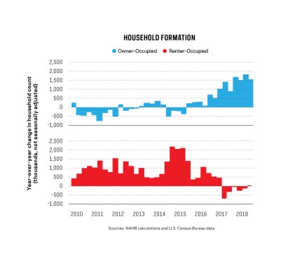 For much of 2018, the focus of housing market analysis has been, correctly, on the negative impact declining housing affordability has had on for-sale housing demand. For example, the NAHB/Wells Fargo Housing Opportunity Index reached a 10-year low as years of price gains and a near 100 basis point increase in mortgage interest rates raised the financing cost of home purchases. However, while higher financing costs and growing construction expenses are holding back home sale volume growth, it is important to keep an eye on factors that are supporting housing demand.
