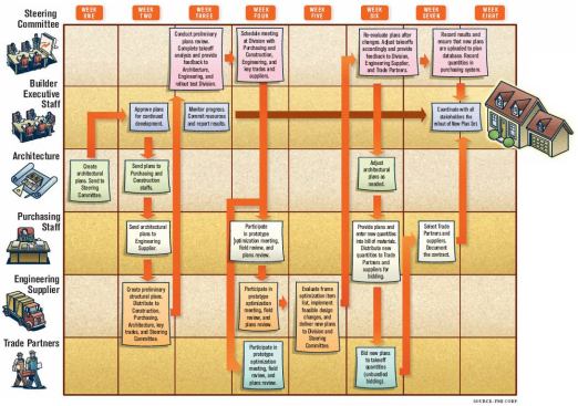 Of course, the fabric of the company has also been transformed by necessary reductions of its forces; but even as overheads have come down, Hilton credits the cultural and structural reorganization for bringing about higher quality of construction and improved cycle times compared to the company’s track record during the high-flying boom years. Cycle time has come down about 31 days, from point of sale through construction to delivery, to between 120 days and 150 days on average.