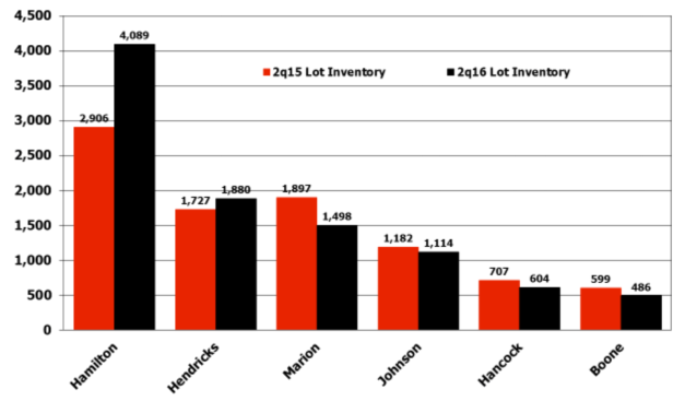 By the end of 2Q16, just over 5,600 annual new lots were delivered with more entitlement activity also occurring. Quarterly lot delivery has not kept pace with absorption, with just over 800 lots entering the market in the second quarter. If not corrected, this trend will restrict the market’s ability to continue its upward rate of growth. With the tightening supply of lots, builders will begin to have difficulty meeting demand unless new lots are delivered. As many desirable locations begin to build out, it will be interesting to track the consumer as they consider other locations within the greater Indianapolis area.
