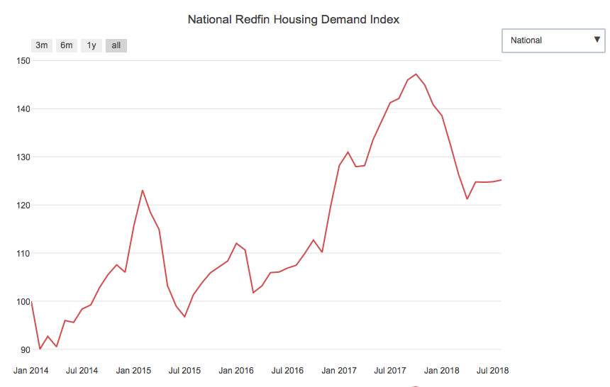 The Redfin Housing Demand Index has remained roughly unchanged for the past four months, inching up 0.3% from July to 125.2 in August, according to Redfin.