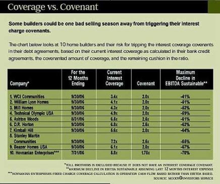 Negative cash flows have many builders dangerously close to tripping the interest charge covenants on their debt.