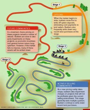 Some industry experts predict that land-related charges will taper off going forward, as the housing market stabilizes and begins improving. Others, however, argue that builders are only halfway through the cycle of land value reductions. And, historically, the next stage has been the most painful. Take a ride to find out why.