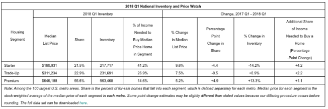 “First-time home buyers face a perfect storm this spring,” said Cheryl Young, senior economist at San Francisco-based Trulia. “Affordable, move-in ready starter homes have become harder to find amid rising home prices and mortgage rates. While new home construction hit a 10-year high in 2017, these units have not translated into starter home inventory just yet.”