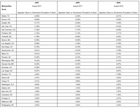 The HPPI showed that appraised values were 1.35% lower than home owners’ expectations in August. This is compared to July when there was a 1.55% difference.