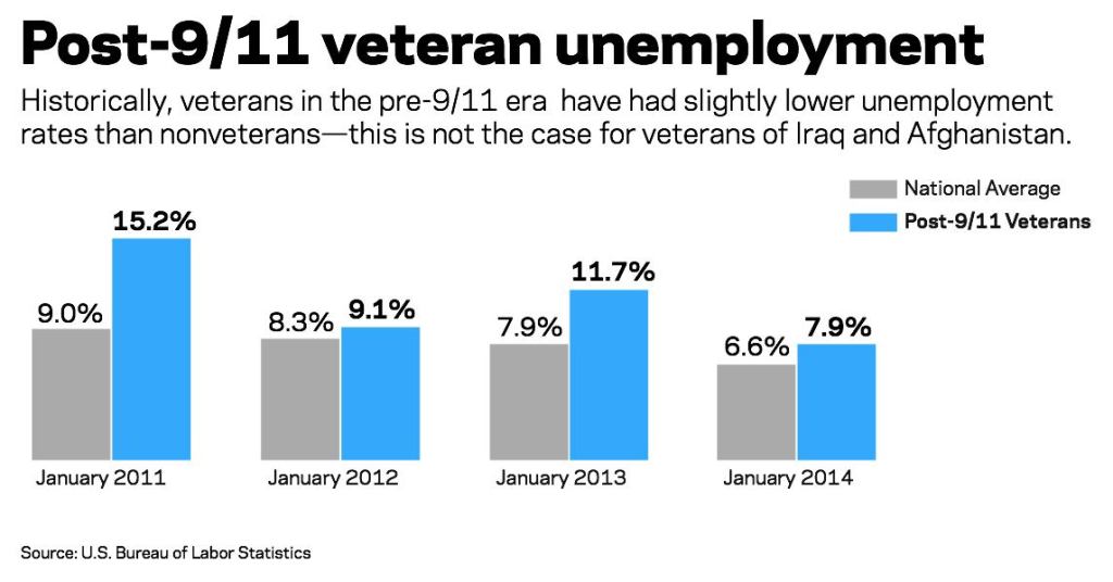 The unemployment rate of post-9/11 veterans has been declining in the past couple of years; in January, the unemployment rate of veterans returning from Iraq and Afghanistan stood at 7.9 percent, versus the overall average of 6.6 percent. A pledge to hire veterans made this week by 100 companies and associations in the construction industry could aid both veteran unemployment rates and labor shortage concerns.