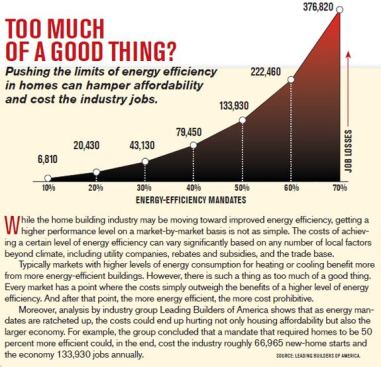 Moreover, regulators are also eyeing that target level of improved efficiency. The 2012 International Energy Conservation Code has yet to reach final approval, but as of October, building code officials had voted to incorporate a series of energy-efficiency mandates that would require homes to be as much as 30 percent more efficient than the standards outlined in the 2006 energy code.