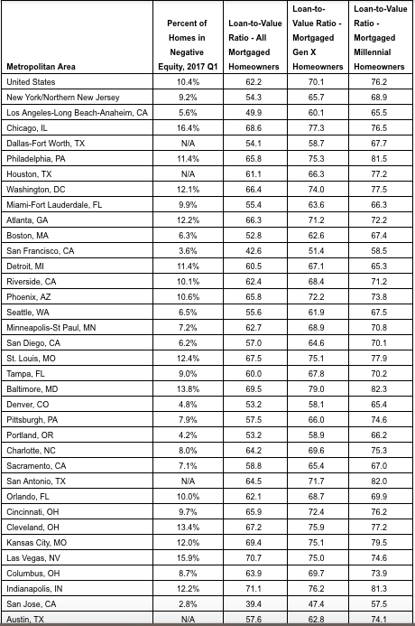 The Zillow Equity Report for the first quarter of 2017 tracks the home equity of more than 50 million homeowners who have a mortgage. The report, which will be released twice a year, tracks the debt that U.S. homeowners are carrying on their homes by age and location.