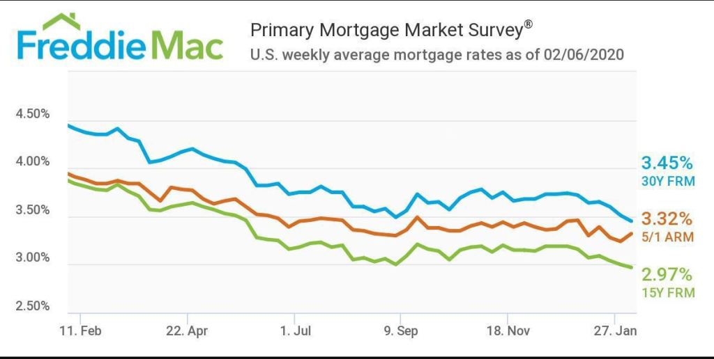 - 30-year fixed-rate mortgage averaged 3.45% with an average 0.7 point for the week ending February 6, 2020, down from last week when it averaged 3.51%. A year ago at this time, the 30-year FRM averaged 4.41%.