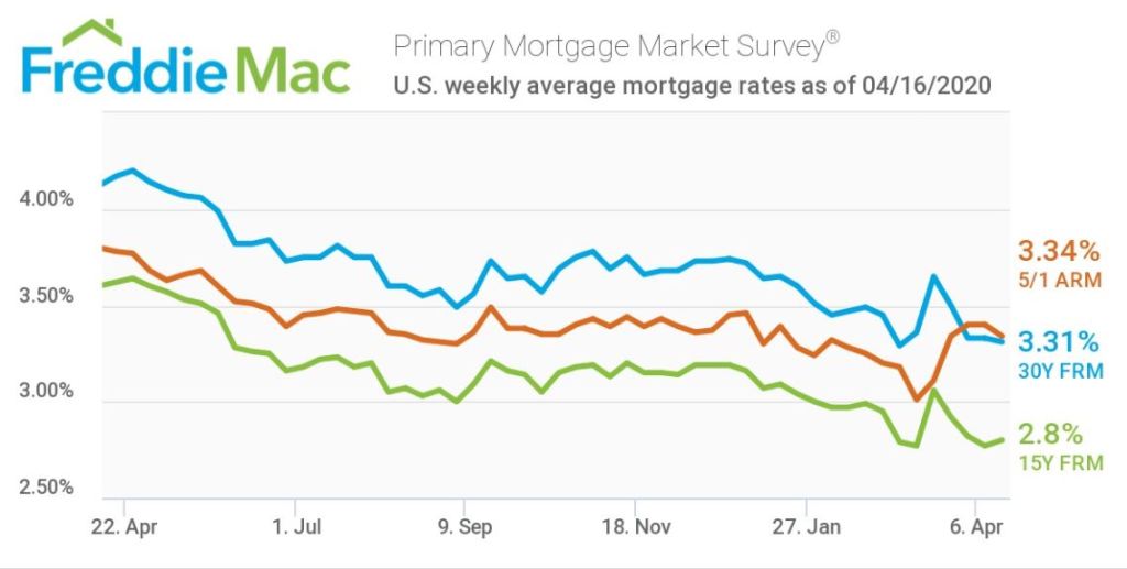 - 30-year fixed-rate mortgage averaged 3.31% with an average 0.7 point for the week ending April 16, 2020, down from last week when it averaged 3.33%. A year ago at this time, the 30-year FRM averaged 4.17%.