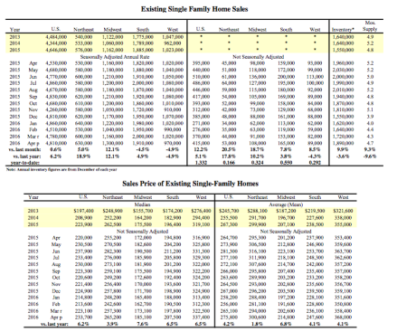 Sales of existing single-family homes were up a more modest 0.6% to a seasonally adjusted annual rate of 4.81 million in April from 4.78 million in March, 6.2% higher than the 4.53 million pace a year earlier. The median existing single-family home price was $233,700 in April, up 6.2% from April 2015.