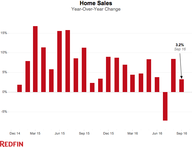 Home sales in September were up 3.2% from a year ago, according to the latest report from Redfin. Year-to-date homes sales were up 4% compared the same period last year.