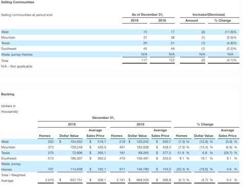 Home sales revenues for the fourth quarter 2019 increased 21% to $775.7 million, compared to $640.2 million for the prior year quarter. The growth in home sales revenues was primarily due to a 22% increase in deliveries to 2,479 homes compared to 2,028 homes for the prior year quarter. Average sales price of home deliveries for the fourth quarter 2019 decreased to $312,900, compared to $315,700 in the prior year quarter.