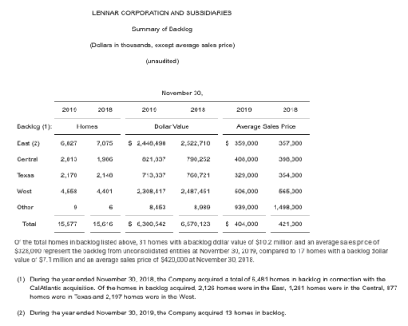 - Backlog of 15,577 homes – compared to 15,616 homes; backlog dollar value of $6.3 billion – down 4%