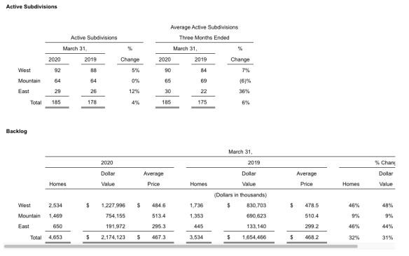 • Ending backlog units up 18% to 4,487 from 3,817