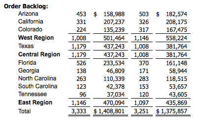 Total orders for the third quarter increased 8% year-over-year due to strong demand in Texas and improved sales execution in the East region. Orders increased 22% over the third quarter of 2016 in Texas, primarily due to a 26% increase in average active communities over the prior year. Total orders increased 13% in the East, primarily due to a 12% increase in absorptions (orders per average active community) during the quarter. Three of the five states in the region produced 20% or greater order growth over the third quarter of 2016, reflecting positive acceptance of new products in new communities, as well as better sales execution. A 7% decrease in average active communities in the West region resulted in a 6% decline in third-quarter orders for the region.
