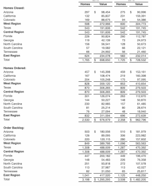 Total orders for the first quarter of 2019 increased 7% year-over-year, driven by a 7% increase in average active community count with an absorption pace consistent with the prior year’s first quarter. Central and East region orders grew 8% and 20%, respectively, while West region orders were 3% lower year-over-year due to a 24% decline in California, continuing a trend that began at the start of 2018 due to affordability constraints.