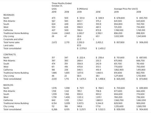 • Home sales revenues were $7.08 billion, down 1%; home building deliveries were 8,107 units, down 2%.