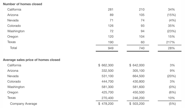 - Average sales price (ASP) of new homes delivered of $478,200 versus $503,200
