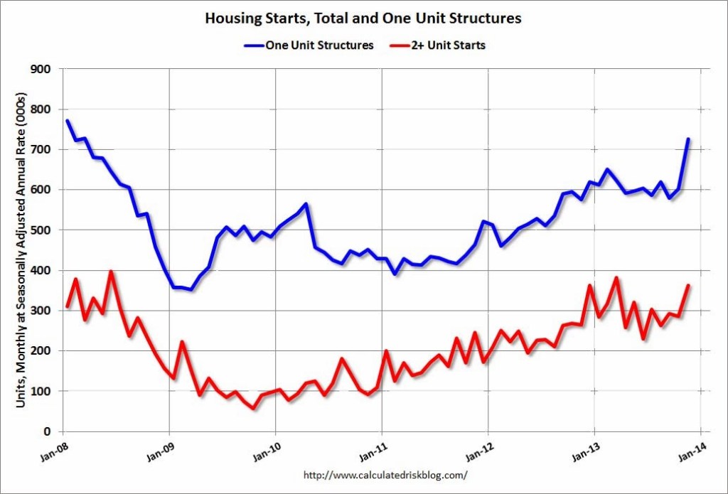 This was well above expectations of 952 thousand starts in November. I’ll have more later … but this was a solid report.