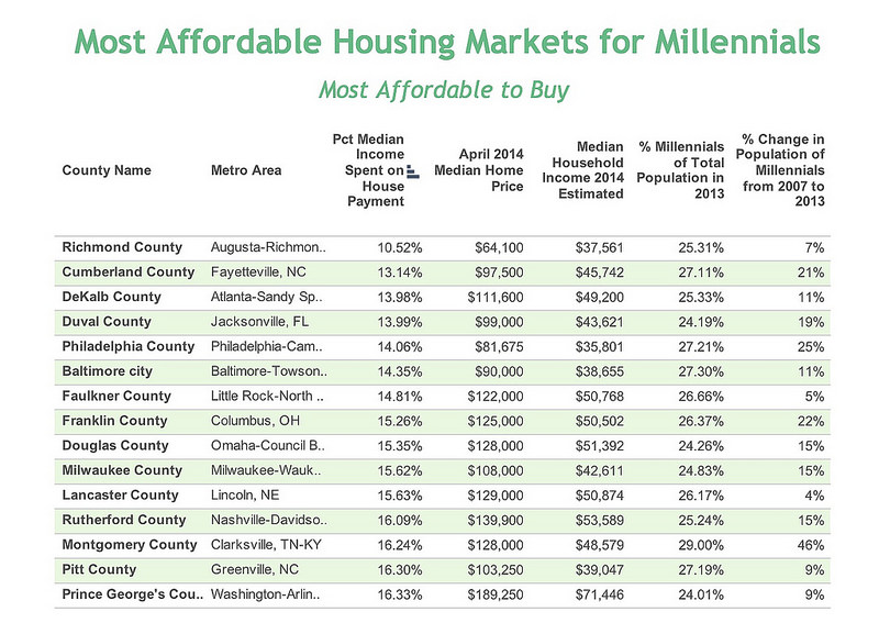The Nation’s 15 Most Affordable Housing Markets–To Buy or Rent–for Millennials