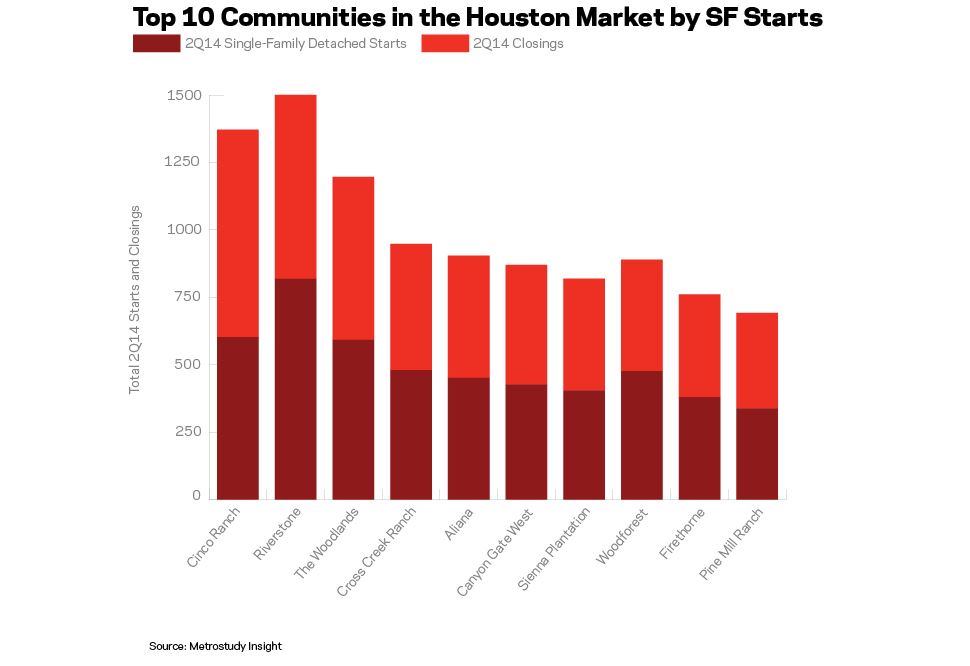 The Houston housing market continued to dominate with strong new-home demand in the second quarter. Developments in the metro area are experiencing high traffic, sales, and starts, with Johnson Development leading in the communities with the most starts. Via Metrostudy data, here are the top 10 community developments in the Houston-Woodlands-Sugar Land, Texas, market ranked by annual starts.