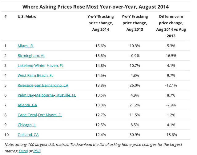 The Top 10 Markets for Asking Prices