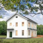 The product consists of four home collections that each focus on keeping energy loads low and achieving Passive House–level air-tightness, to reduce energy use by 50% to 75% compared to standard new homes, making the houses net-zero capable should owners add a photovoltaic array. Call it Passive House Lite.