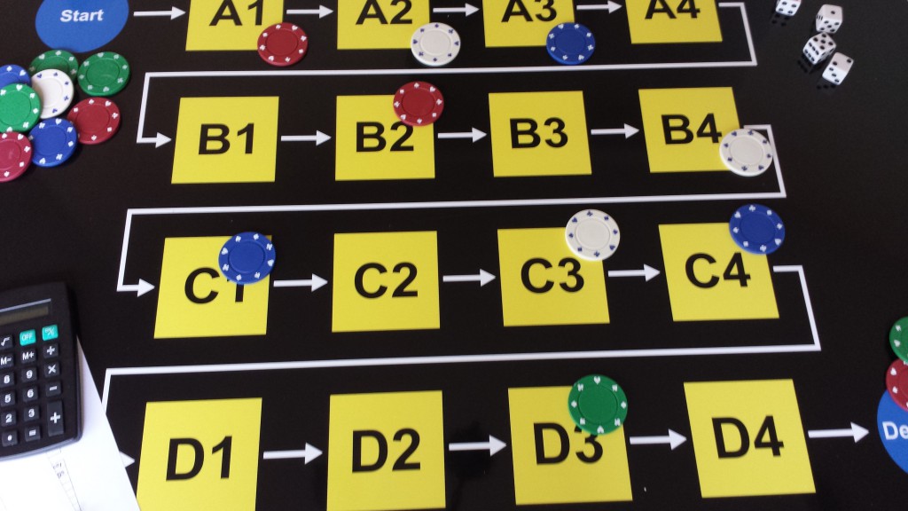 The opportunity to simulate higher volume home building production in a progressive series of scenarios enables an operator to “see” production in a that can help diagnose dysfunction and improve decision-making. This is that Fletcher L. Groves III does with his Pipeline Workshop “Game,” a tool for teaching both production and business principles